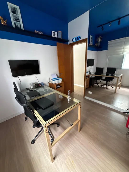 Dormitórios: 3 dormitórios, sendo 1 suíte com guarda-roupa e painel planejado, além de uma mesa ideal para home office. Os outros 2 quartos contam com um banheiro adicional com armário.