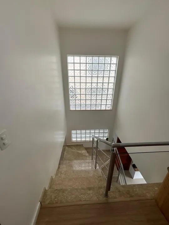 Banheiros: Suíte com nichos e pia em mármore travertino; banheiro adicional também com armário e nichos.