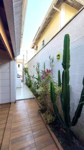 Esta casa conta com 3 dormitórios, sendo um deles uma suíte e outro com banheiro separado. O terceiro dormitório foi convertido em um prático closet, ideal para quem busca espaço e organização. A área de serviço funcional e o lavabo completam a praticidade do imóvel.