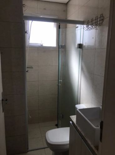 Apartamento com dois quartos e um banheiro, sala e cozinha, todos com móveis planejados. Os quartos possuem roupeiros planejados em L, aproveitando bem o espaço em ambos os ambientes. A sala de estar conta com painel para TV, e a cozinha tem armários planejados em L, com forno elétrico e a gás, cooktop de quatro bocas, ambos da marca Brastemp, além de depurador de ar inox Eletrolux. O banheiro dispõe de armário com tampo de granito, cuba quadrada e box camarão. O imóvel possui pisos e revestimentos em porcelanato, teto com gesso rebaixado, sanca na sala e ótima iluminação natural.