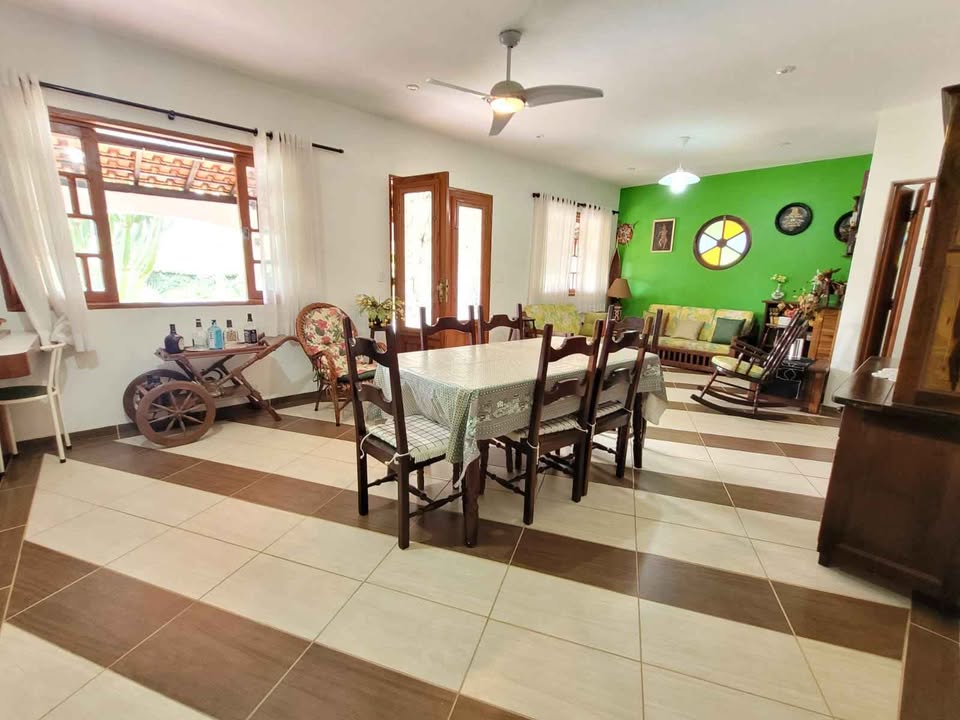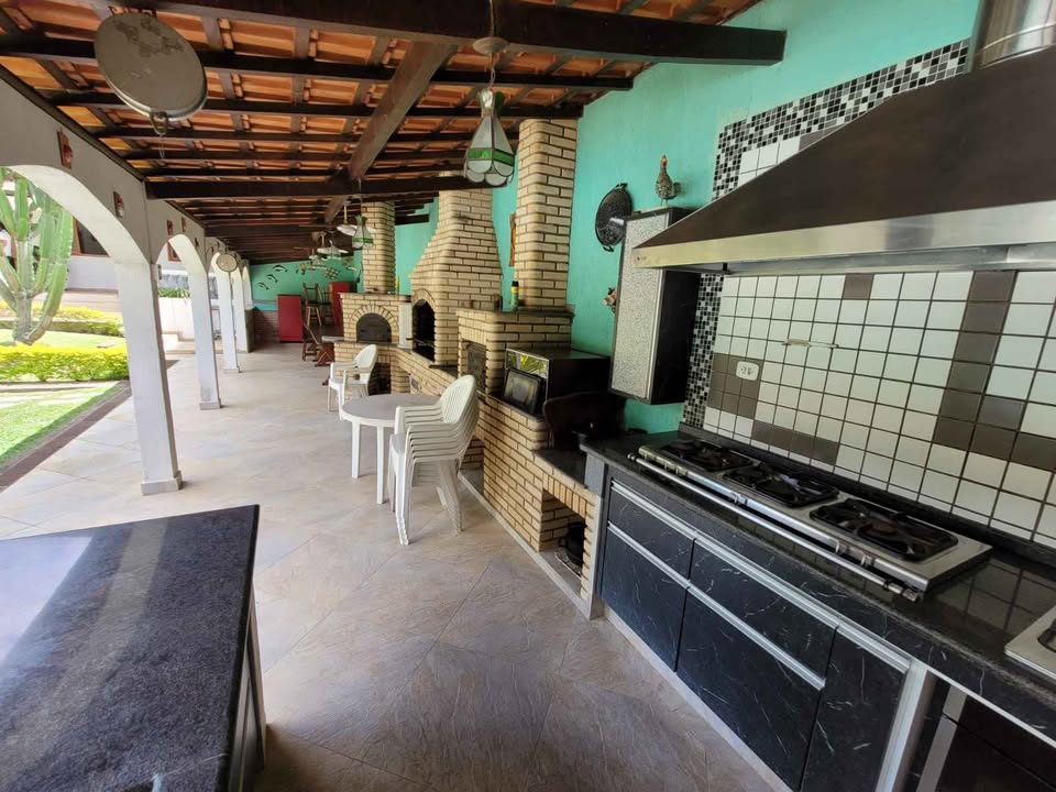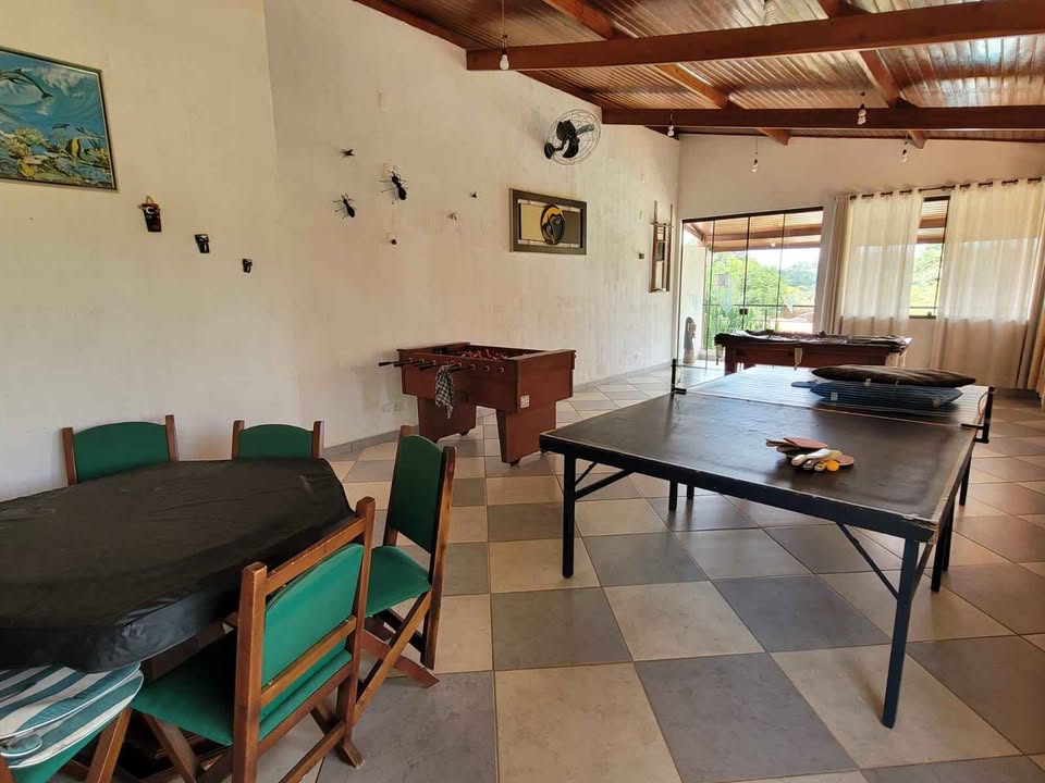 Chácara com 7 dormitórios, todos suítes, ampla sala de jantar e cozinha equipada com móveis planejados. Conta com 1 banheiro social e uma área de serviços funcional. O imóvel possui um salão de jogos espaçoso com vista para a piscina, ideal para entretenimento e convivência. O espaço gourmet é completo, com churrasqueira, forno de pizza e fogão a lenha, perfeito para receber amigos e familiares. A piscina de fibra mede 12x6 metros, oferecendo lazer e conforto. Além disso, há um campo de futebol, proporcionando diversas opções de lazer ao ar livre em um ambiente tranquilo e rodeado pela natureza.