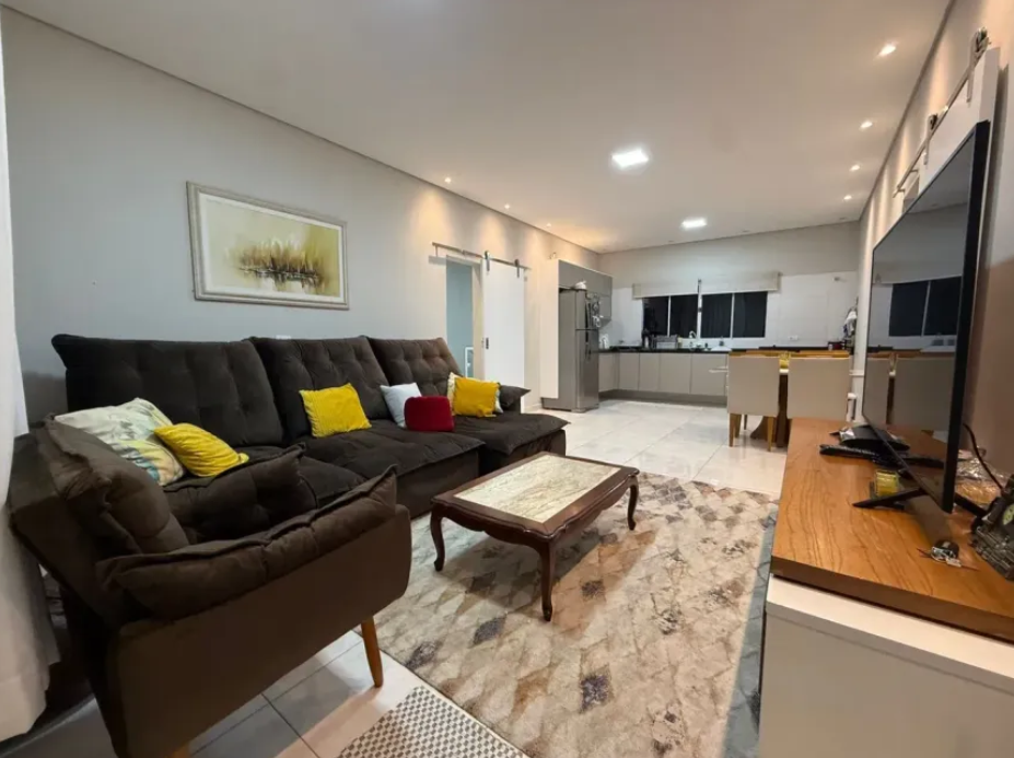 Casa com 3 dormitórios, sendo 1 suíte com closet, totalizando 4 banheiros. Possui 6 vagas de garagem, sendo 3 cobertas e 3 descobertas. O imóvel se destaca pelos ótimos acabamentos e pela excelente luminosidade natural em todos os ambientes. A sala é integrada à cozinha americana, criando um espaço moderno e funcional. Conta com área gourmet completa, ideal para receber convidados, além de salão de jogos, dependência de empregada com banheiro, lavanderia independente, piscina para lazer e um canil, oferecendo conforto e praticidade para toda a família.