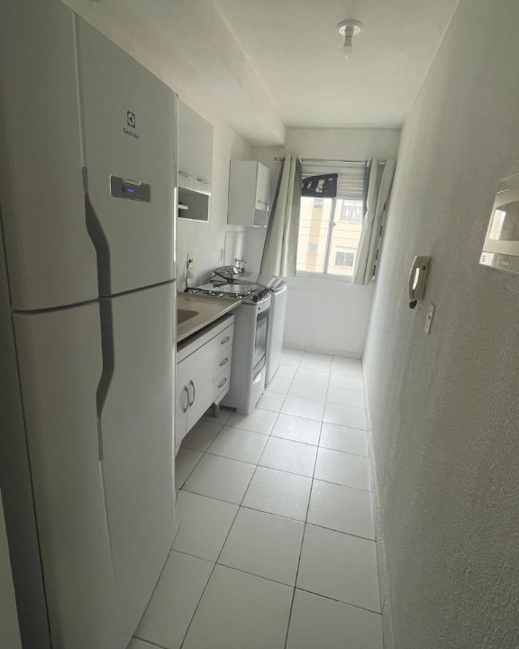 Apartamento com 2 dormitórios, sala ampla em dois ambientes, banheiro, cozinha, área de serviço e 1 vaga de garagem.
