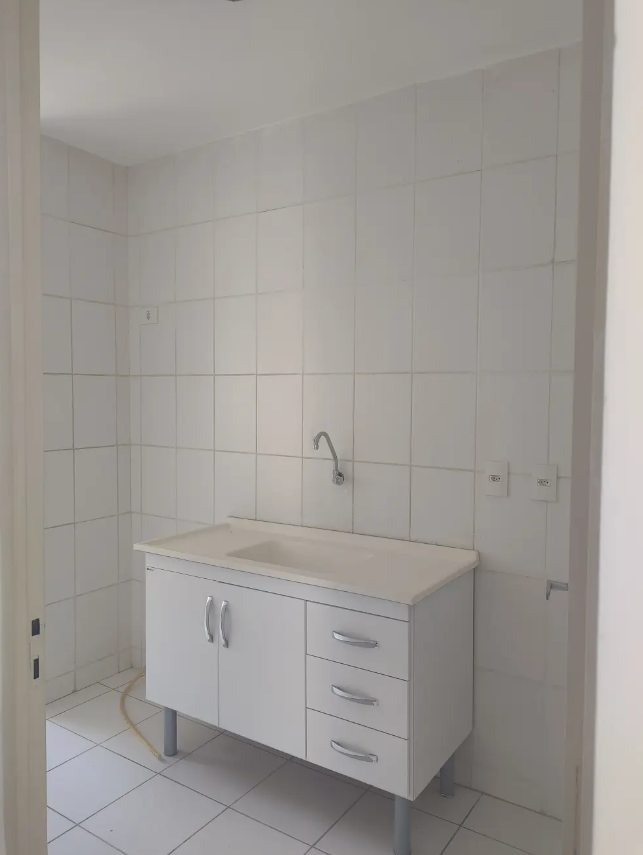 Apartamento com 2 dormitórios, sala com sacada, cozinha equipada com gabinete, 1 banheiro e 1 vaga de garagem. Localizado no 5º andar, com acesso por três lances de escada.