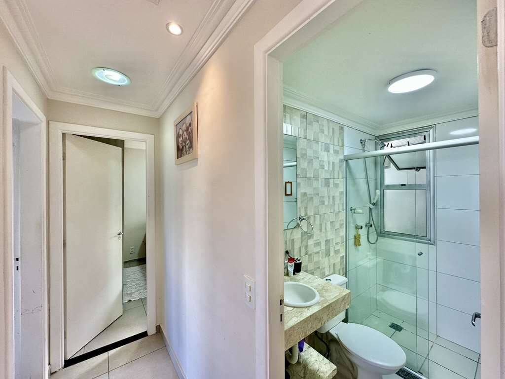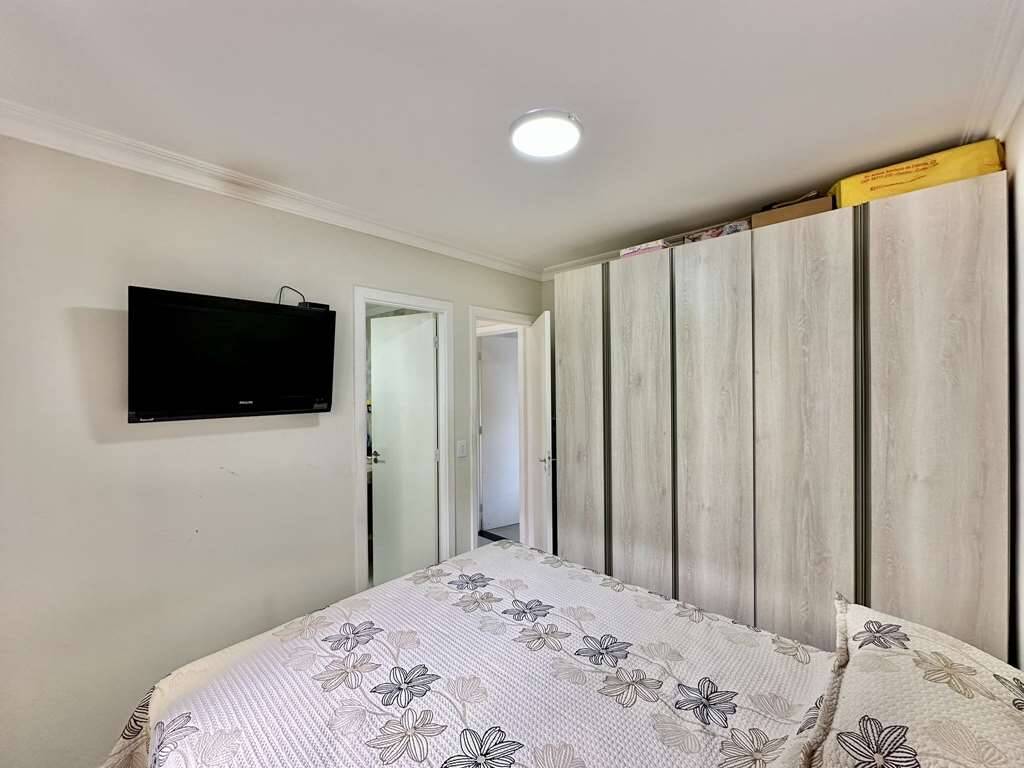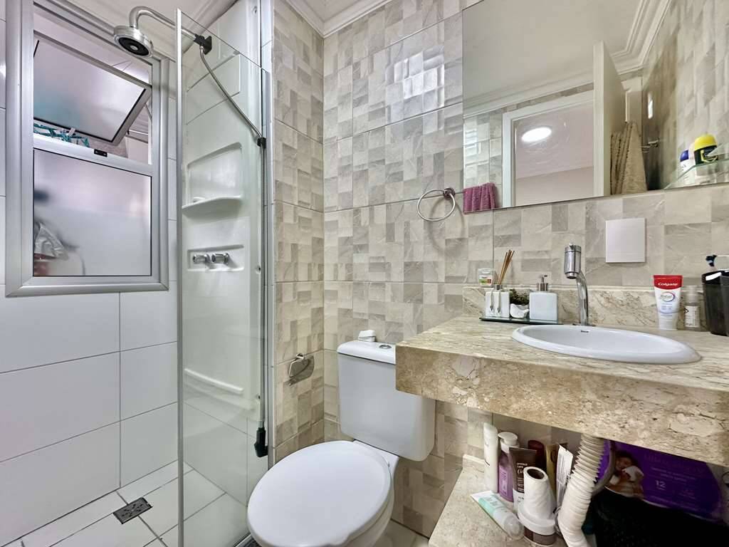Apartamento com 2 dormitórios, sendo 1 suíte, ambos com banheiros equipados com tampo em mármore e box de vidro. O living foi ampliado, integrando a sala de estar, sala de jantar e varanda coberta, oferecendo um espaço amplo e confortável com sancas e iluminação embutida. A cozinha está integrada ao living e conta com armários planejados, assim como a área de serviço, que dispõe de tanque e armários planejados. O imóvel possui aquecimento central de água a gás de passagem. Os únicos móveis que permanecem no imóvel são os armários planejados fixos da cozinha e lavanderia, garantindo funcionalidade e praticidade.