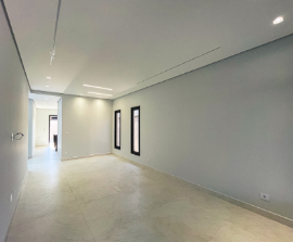 Imóvel de projeto exclusivo com fino acabamento, oferecendo 3 quartos, sendo 1 suíte com closet, além de banheiro social. Conta com salas de estar, sala de TV e sala de jantar, todas com iluminação natural proporcionada por claraboia. A cozinha gourmet possui ilha central, integrada à área gourmet coberta com churrasqueira em vidro. Garagem para 3 carros, sendo 2 cobertos, completando um espaço funcional, moderno e elegante.