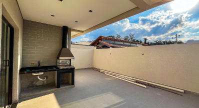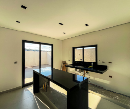 Imóvel de projeto exclusivo com fino acabamento, oferecendo 3 quartos, sendo 1 suíte com closet, além de banheiro social. Conta com salas de estar, sala de TV e sala de jantar, todas com iluminação natural proporcionada por claraboia. A cozinha gourmet possui ilha central, integrada à área gourmet coberta com churrasqueira em vidro. Garagem para 3 carros, sendo 2 cobertos, completando um espaço funcional, moderno e elegante.