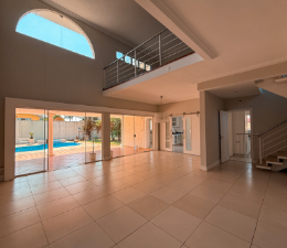 Imóvel amplo e sofisticado com 4 quartos, incluindo 1 suíte americana e 1 suíte master com closet e banheira, sala para 3 ambientes com pé direito alto, sala de TV e sala íntima no piso superior. Conta com escritório, cozinha planejada, lavanderia e suíte de serviço. A área de lazer inclui área gourmet com churrasqueira e piscina, oferecendo espaço para convivência e entretenimento. Garagem para 3 carros completa a estrutura, unindo conforto, praticidade e bem-estar em todos os ambientes.
