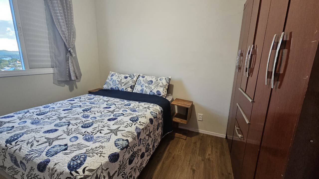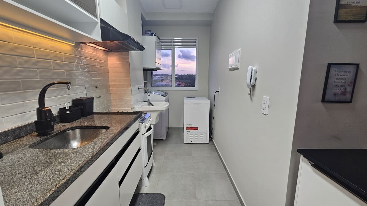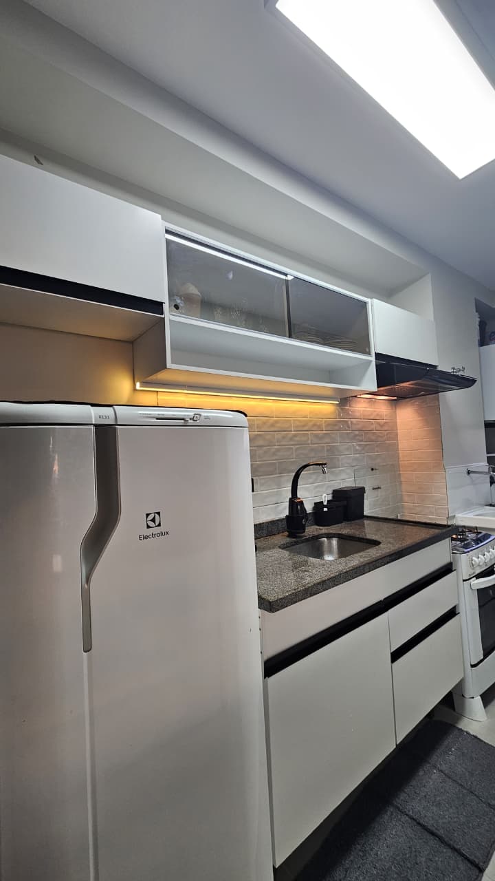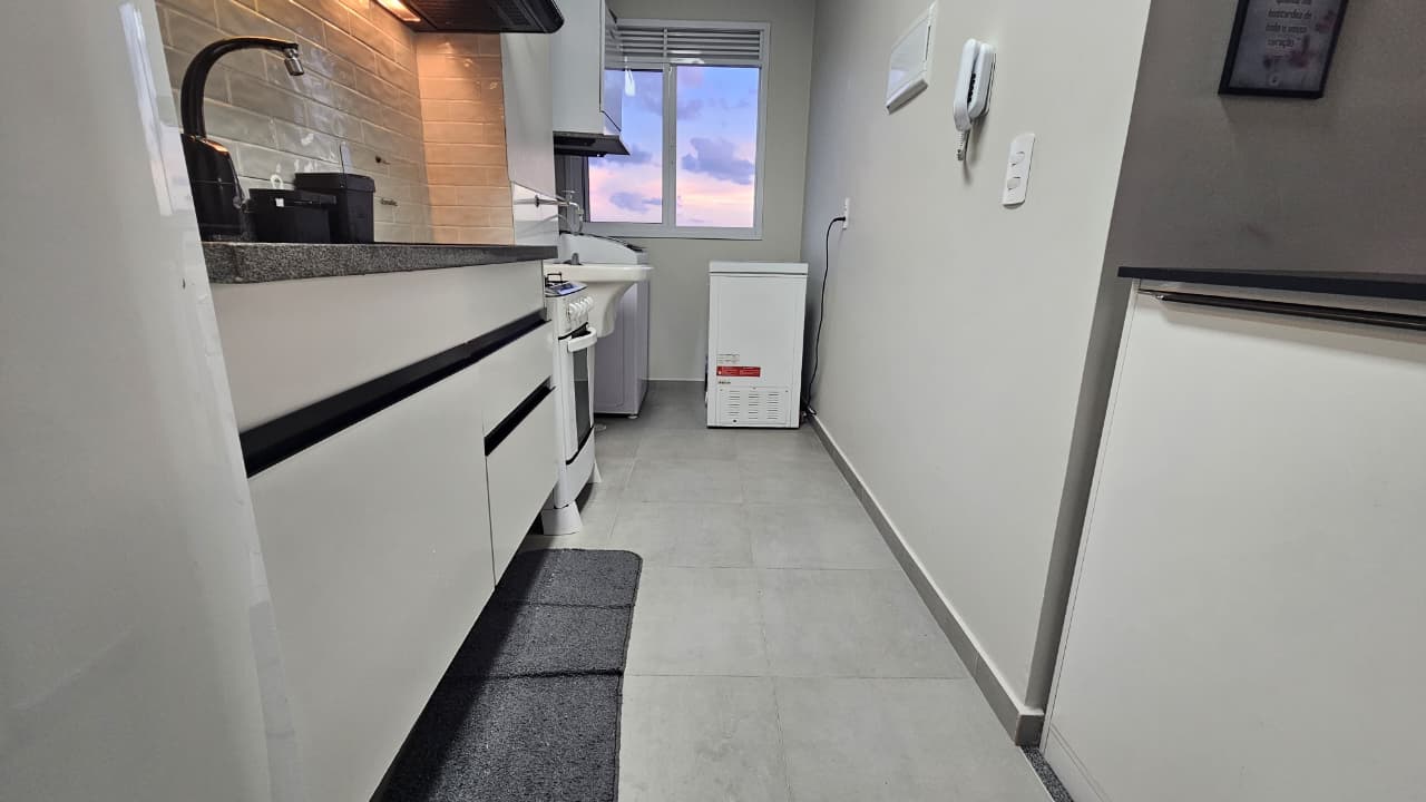Apartamento no útimo andar com 02 dormitórios, sala ampla em dois ambientes, sacada, luzes inteligentes integradas à Alexa, banheiro com box, cozinha com armários planejados, sugar (depurador de ar), led, torneira com água quente, e filtro de água, área de serviço e 1 vaga de garagem. NÃO ACEITA PET.